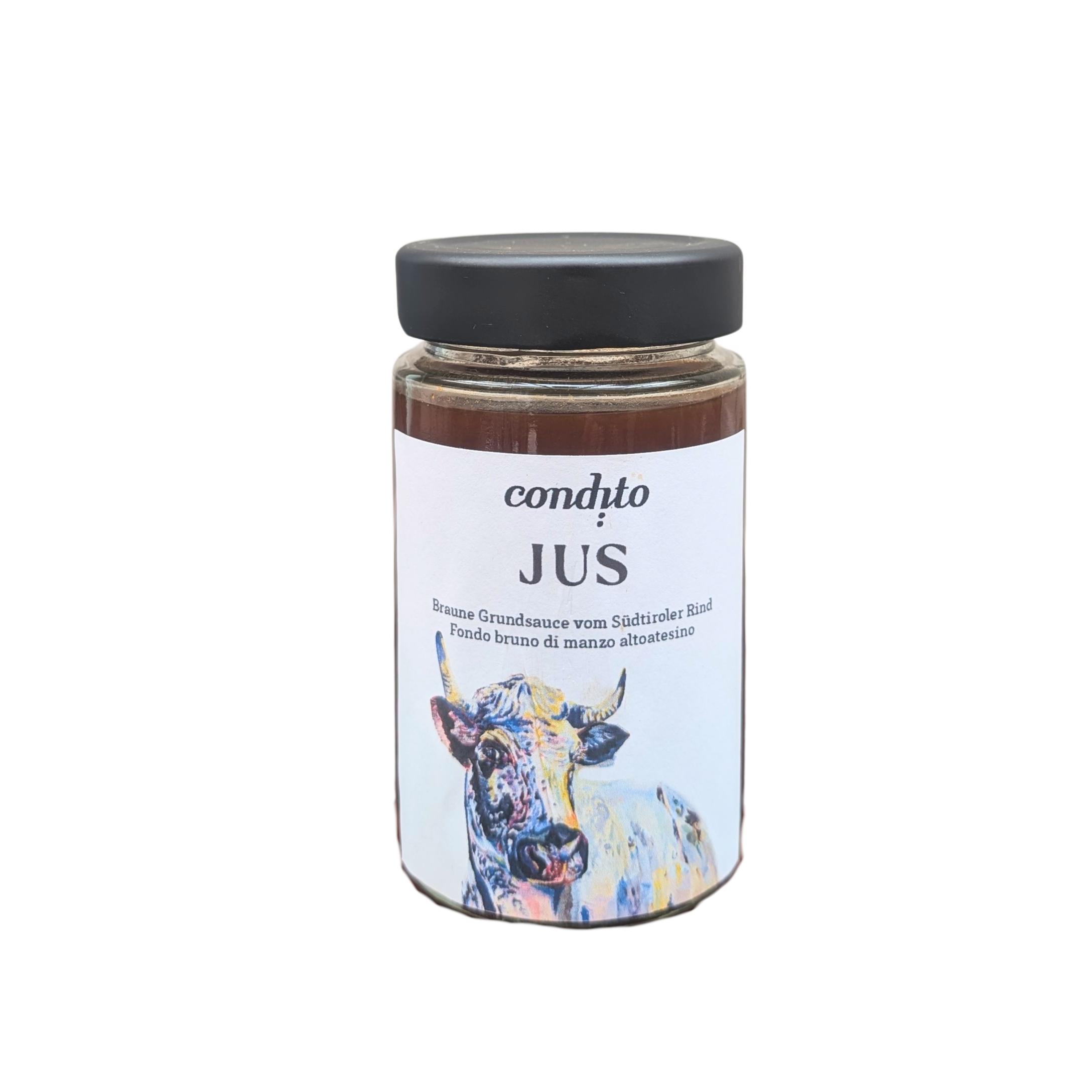 Gebrauchsfertige, handwerklich hergestellte Sauce aus Knochen von Südtiroler Rindern und Kälbern, Gemüse und Kräutern. In Bozen produziert und verpackt, die Knochen stammen vom Südtiroler Metzger und vom Südtiroler Rind (Kovieh).